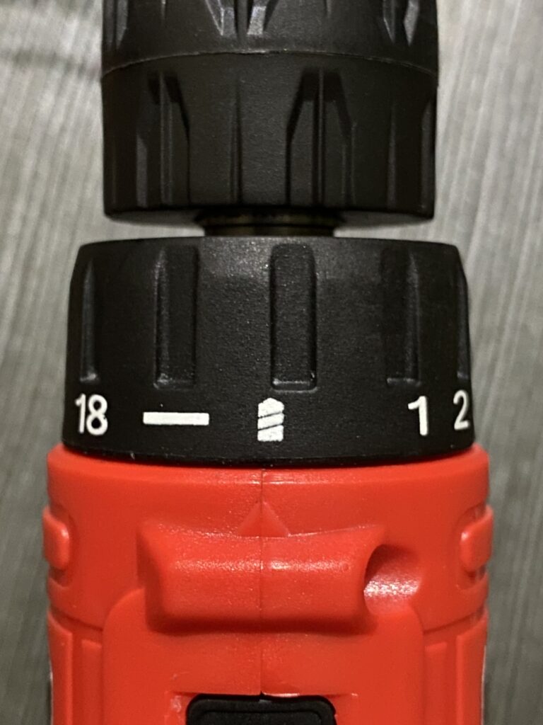 - Select “Drill mode” on the torque adjustment ring. This is the last setting on the 18-position torque gear, usually marked with a drill bit icon.
